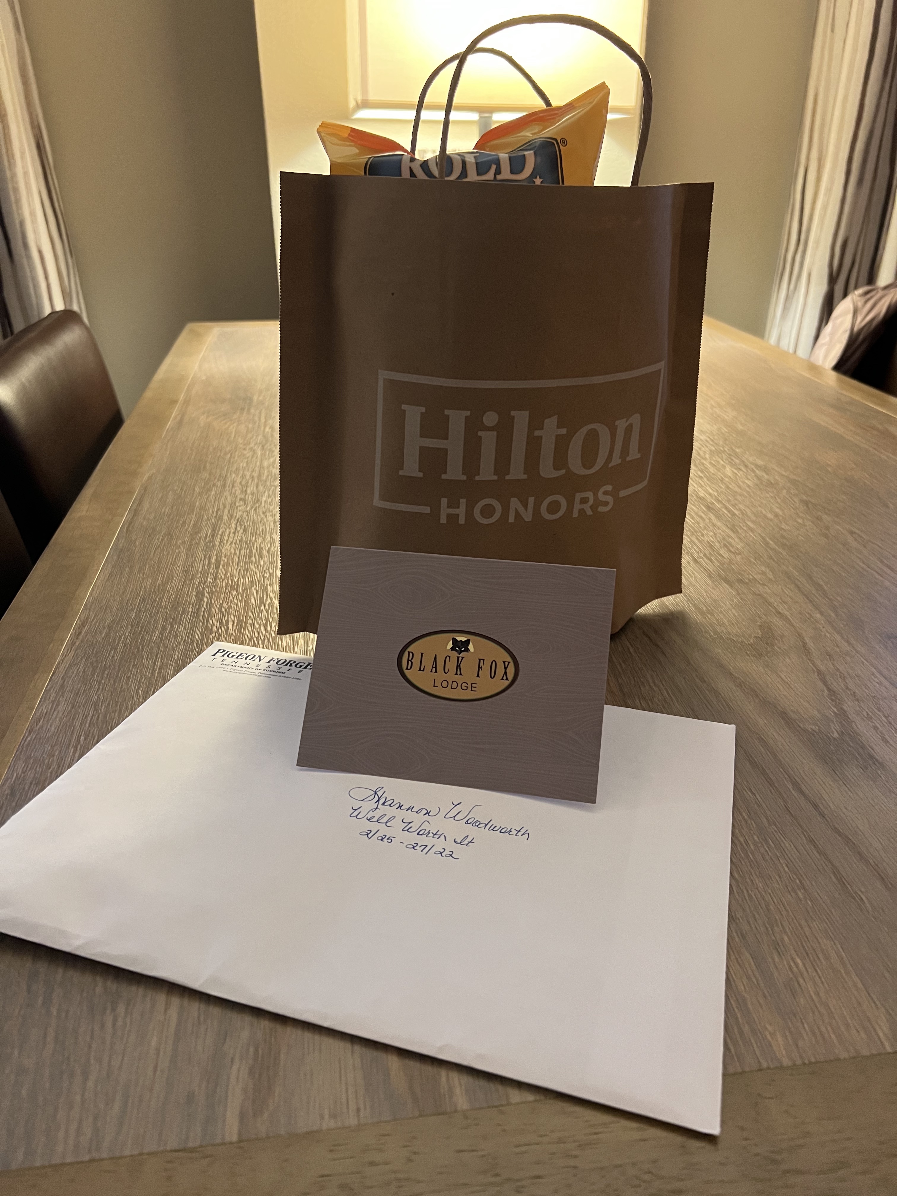 Pigeon Forge hosted Kyle and I for a long weekend this past week (February) to celebrate my birthday a little early! They put us up for the weekend in a suite at Black Fox Lodge and it was the PERFECT location to stay. We were close to everything, walking distance to stores, shops, & restaurants, plus had hot breakfast daily next to the first in the expansive lobby. When we entered our room, we were greeted with a welcome bag of goodies, everything we needed for our trip, plus a water-side view (see my reel on Instagram for the full room tour).